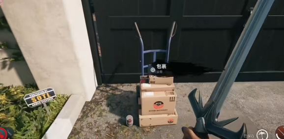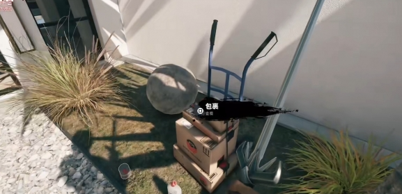 在门口通过互动键与包裹互动。