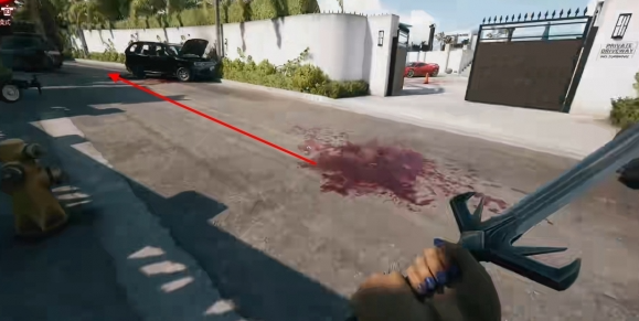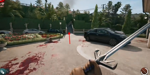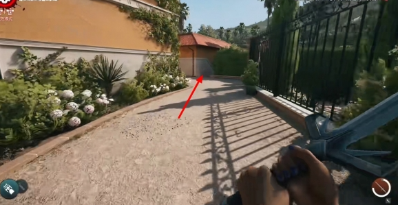 到达大门处后进入,前往车库门口。