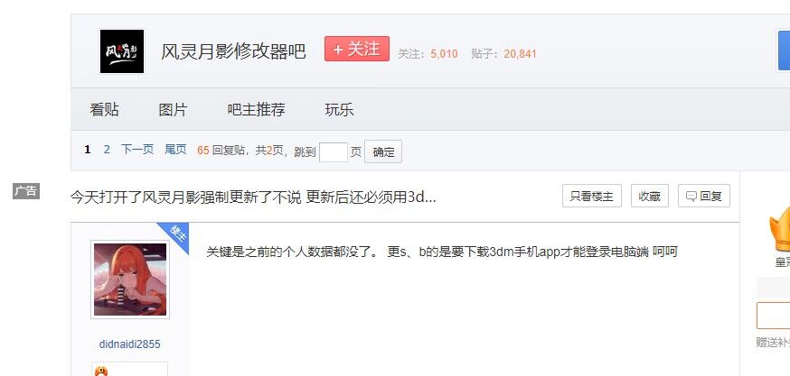 风灵月影在4月23日的更新中弄出了一手骚操作,导致所有使用它家修改器的玩家都无法直接修改游戏数据,下面小编为大家带来风灵月影强制更新事件。
