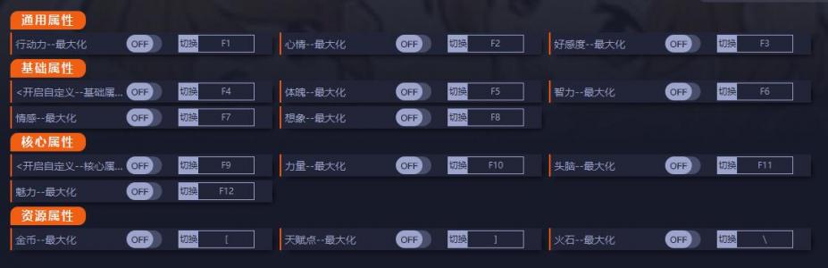 3、关于基础属性与核心属性:必须先激活 <开启自定义> 才能正常使用其相关子项。修改结果将会在进行任意活动安排后生效。